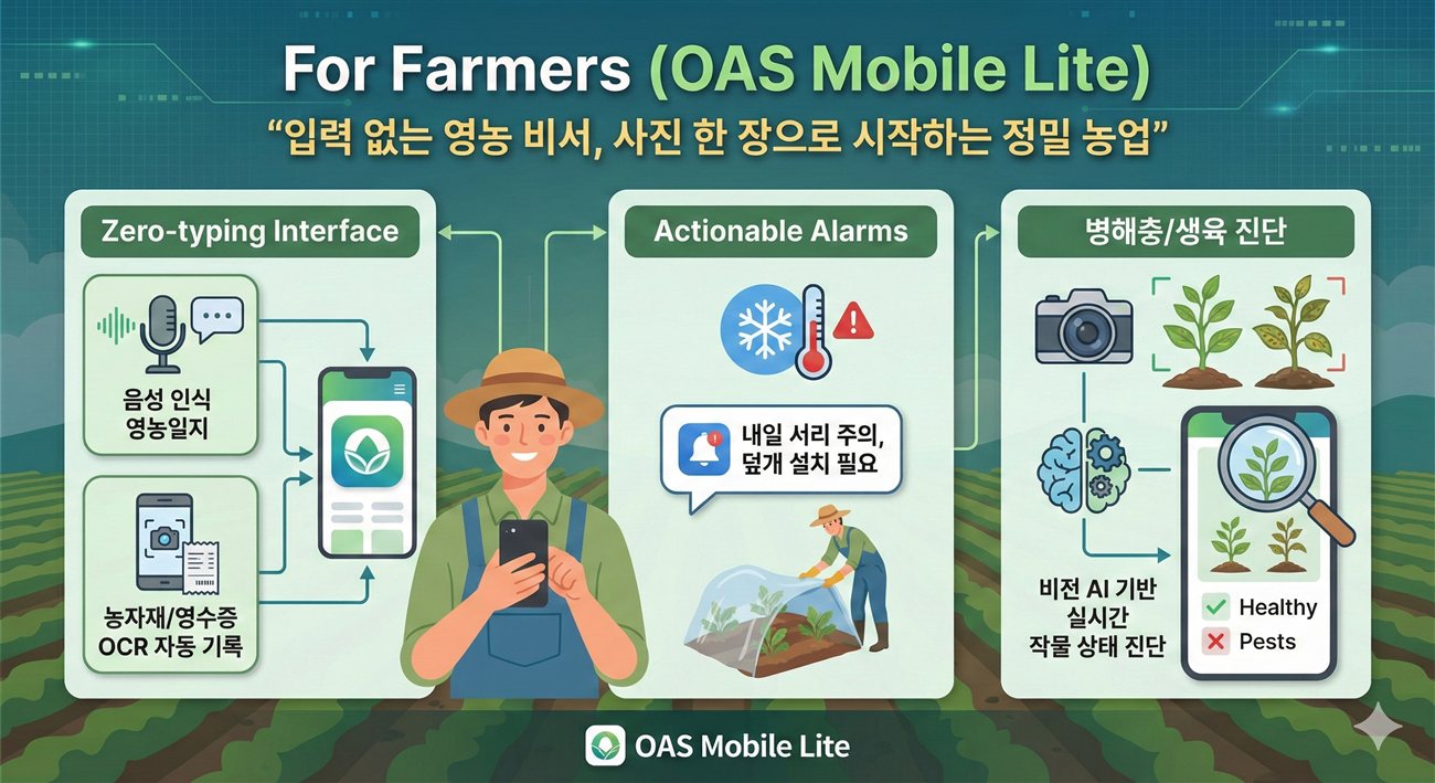 - Zero-typing Interface: 음성 인식 영농일지 및 농자재/영수증 OCR 자동 기록.