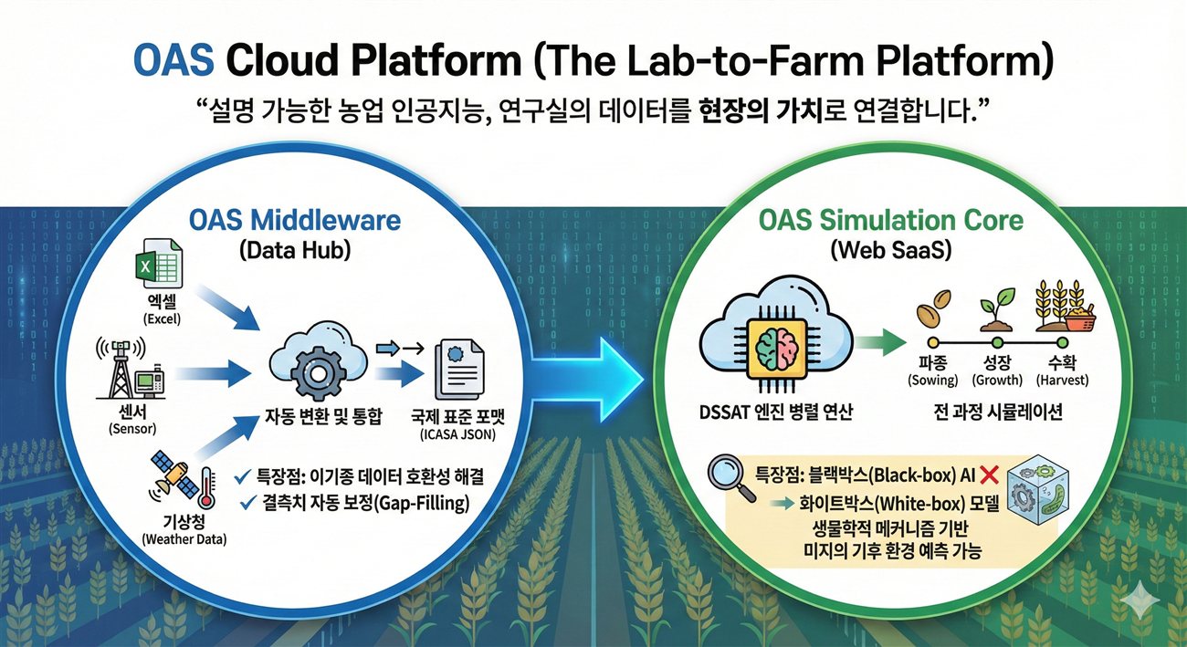 기능: 40년간 검증된 DSSAT 엔진을 클라우드에서 병렬 연산하여 작물의 파종부터 수확까지 전 과정 시뮬레이션.